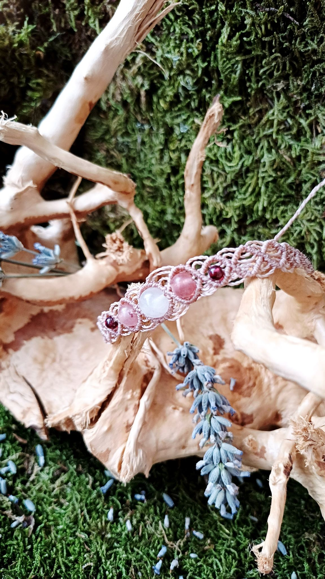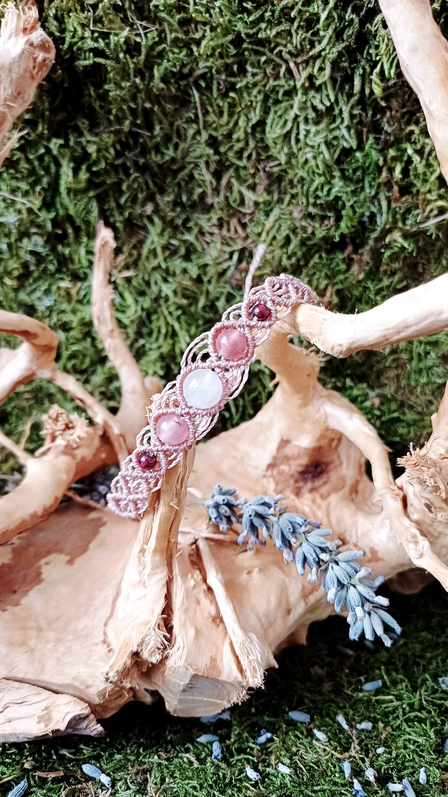 Matériaux : Fil linhasita, Grenat, Quartz fraise, Quartz rose