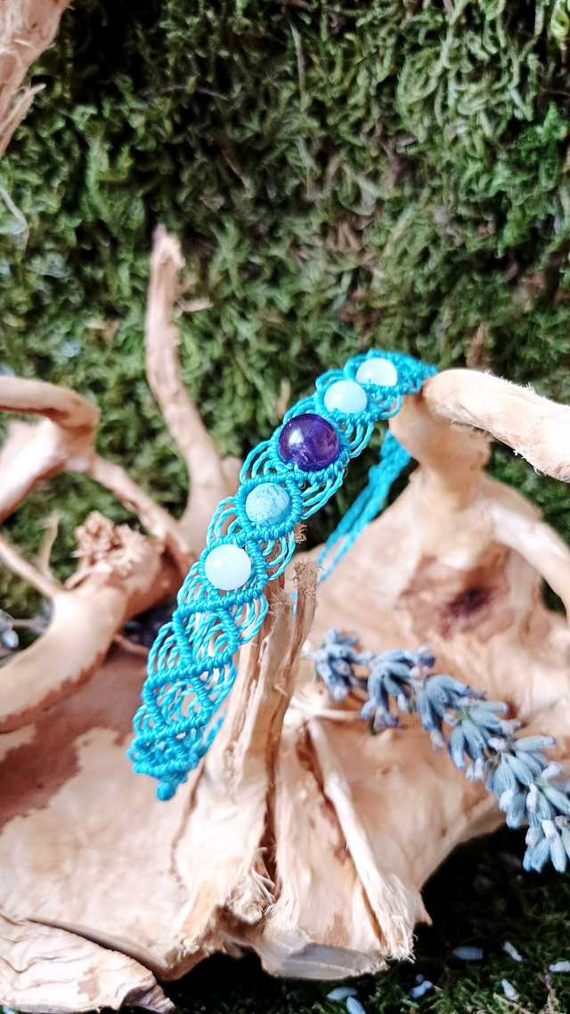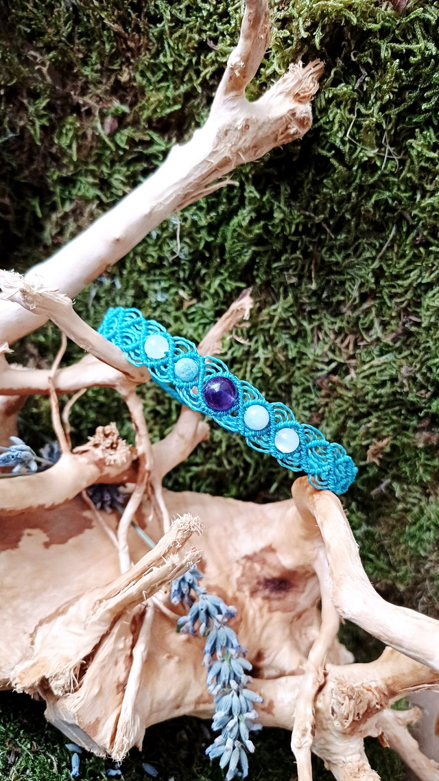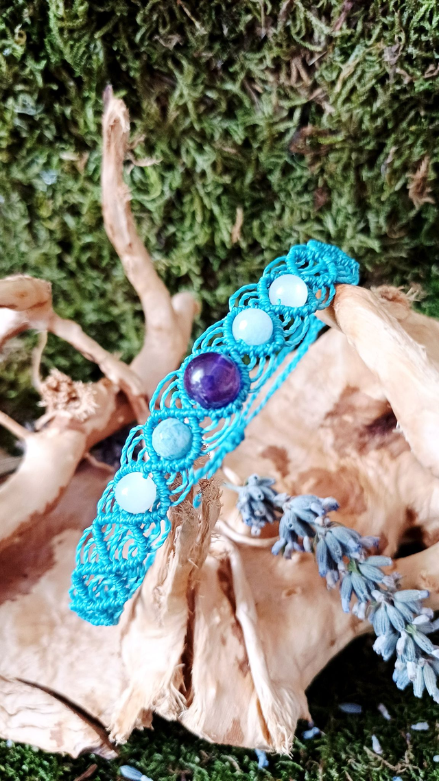 Matériaux : Fil linhasita, Améthyste, Aigue-marine, Pierre de lune