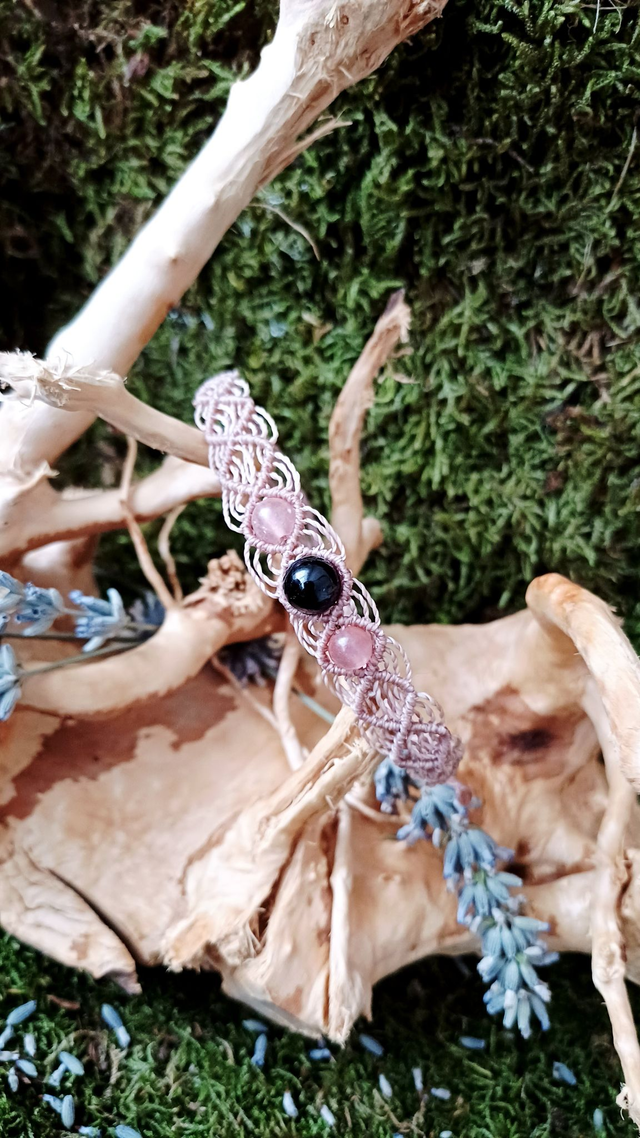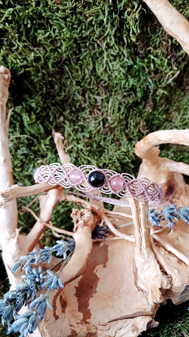 Matériaux : Fil linhasita, Tourmaline noire, Quartz fraise