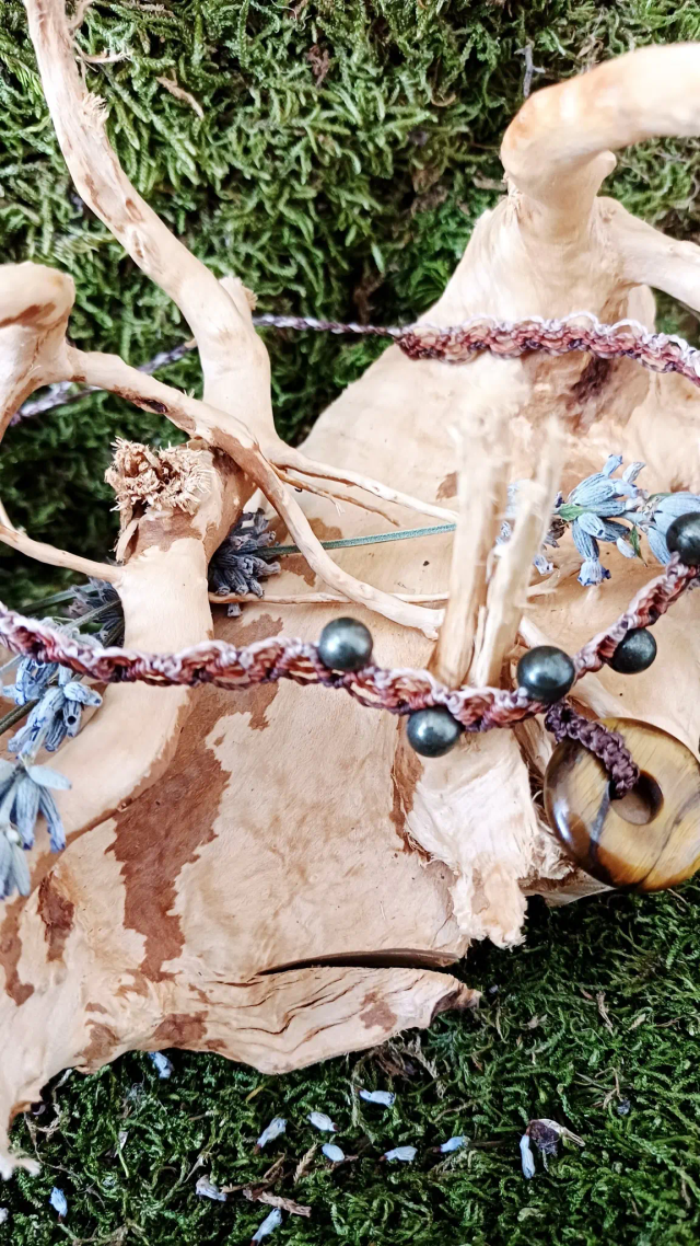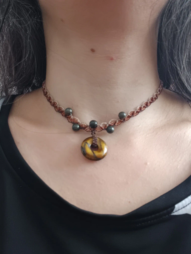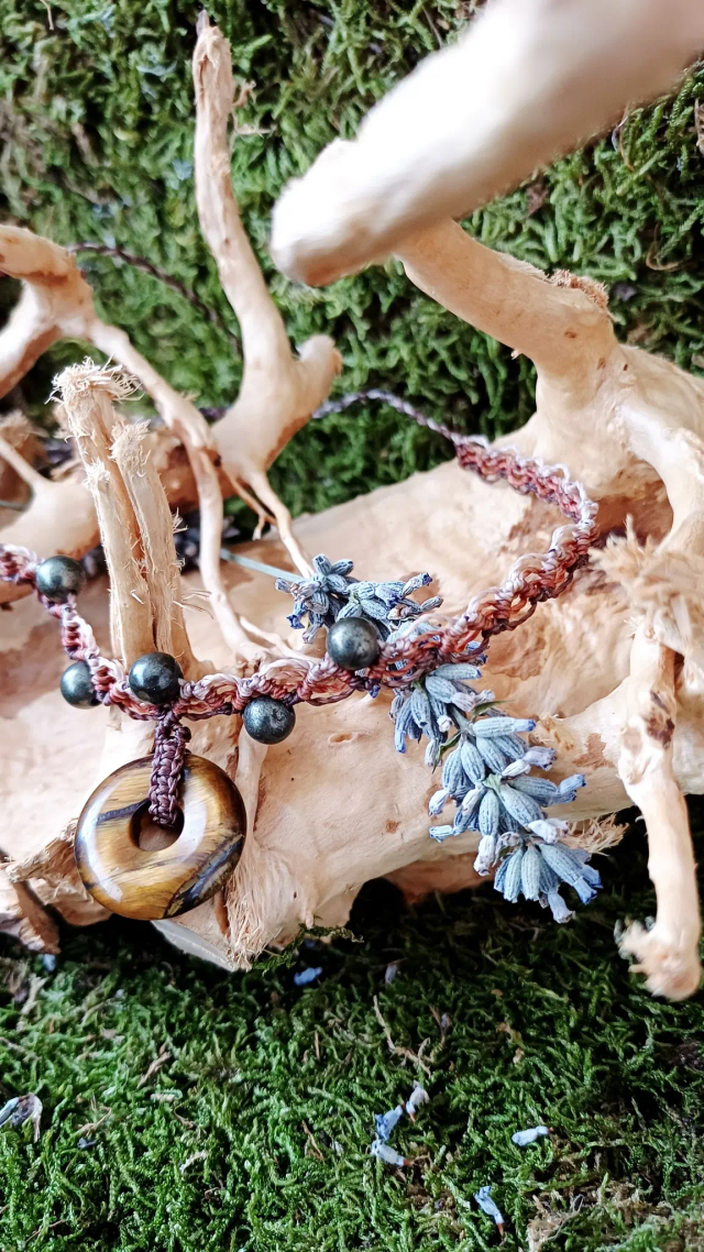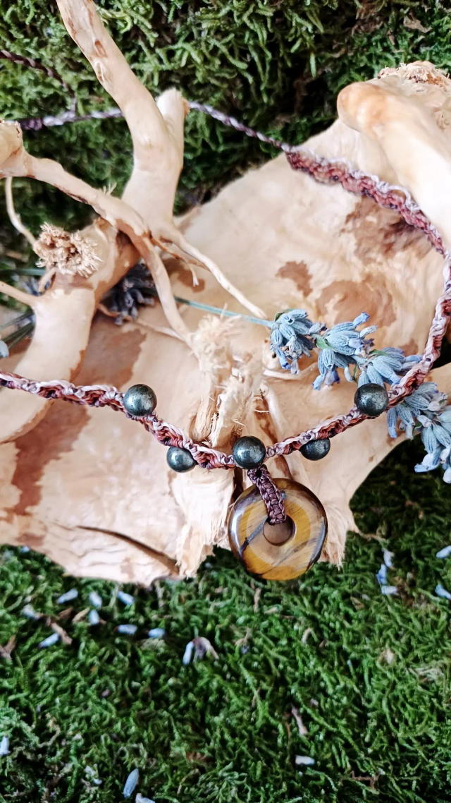 Matériaux : Fil Linhasita, Oeil de tigre, Pyrite