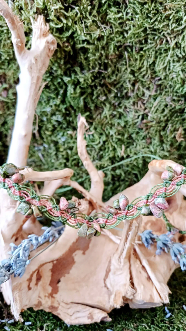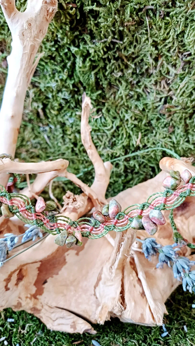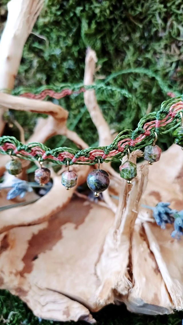 Pierre : Unakite (pierre naturelle, considérée comme une pierre de sagesse)
