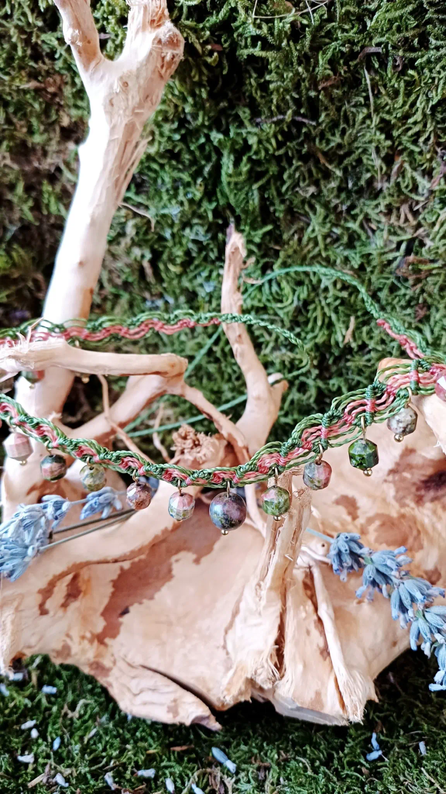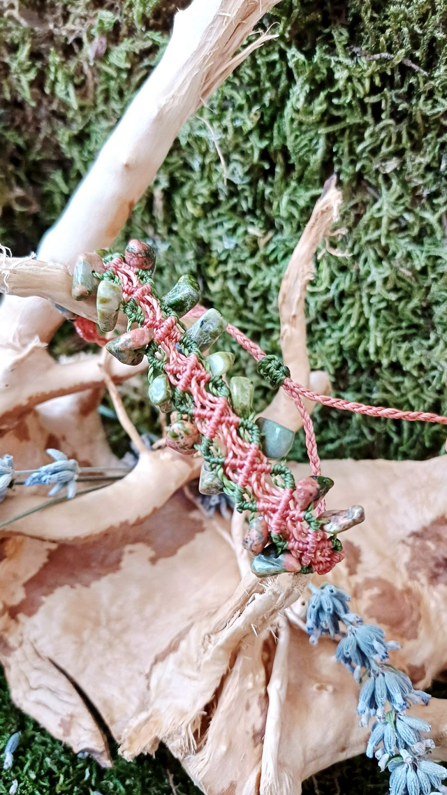 Pierre : Unakite (pierre naturelle, considérée comme une pierre de sagesse)