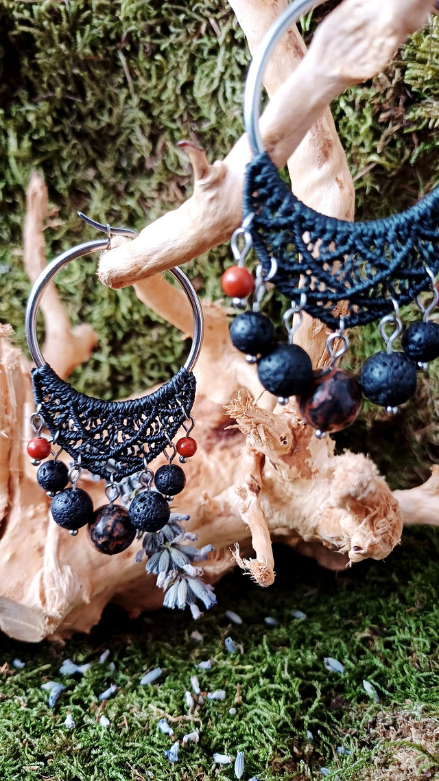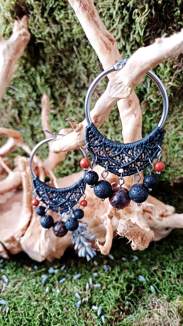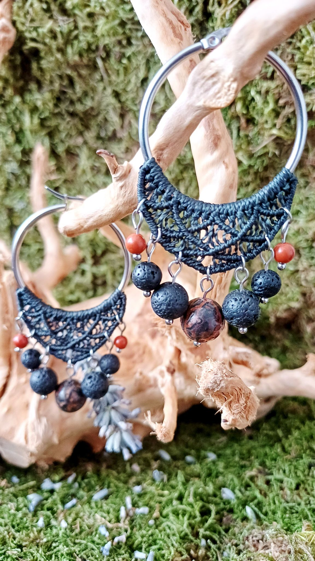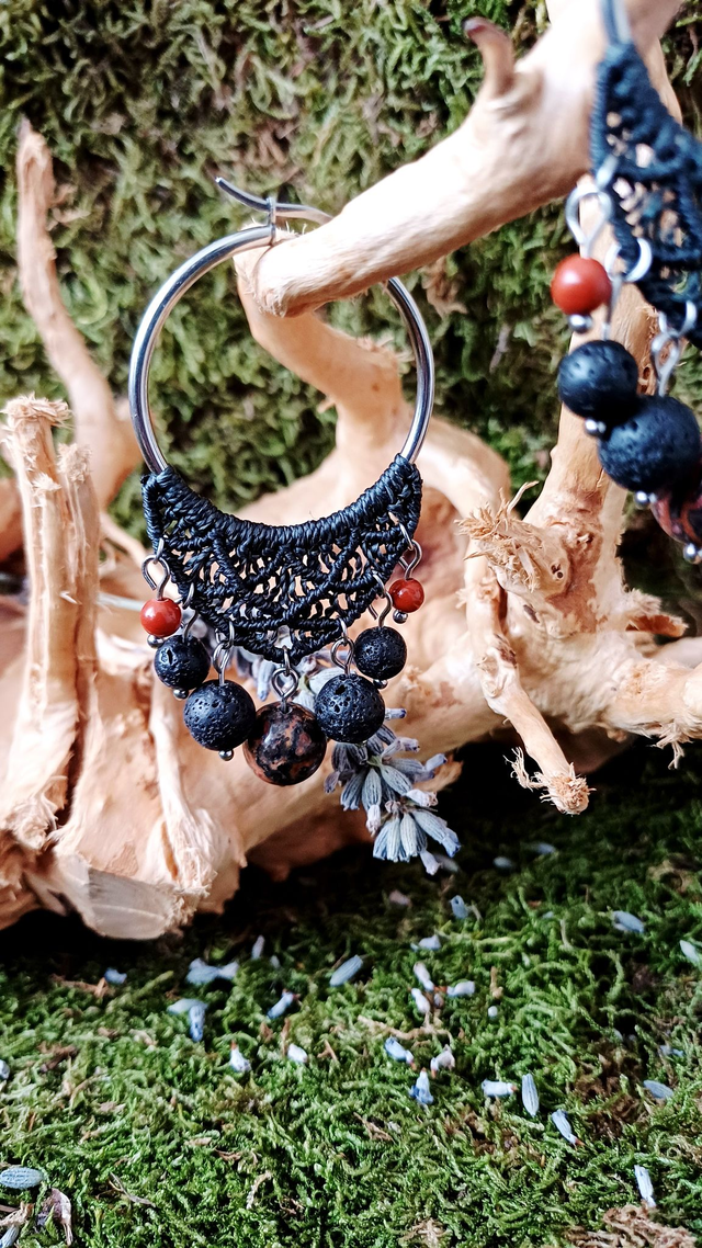 Matériaux : Fil linhasita, Jaspe rouge, Pierre de lave, Jaspe peau de léopard, Acier inoxydable