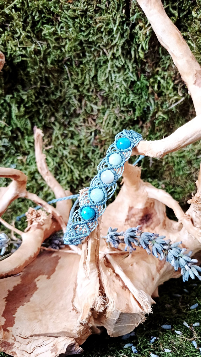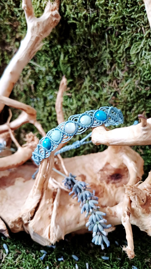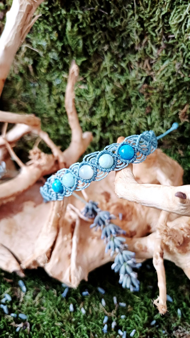 Matériaux : Fil linhasita, Apatite bleue, Pierre de lune, Aigue-marine