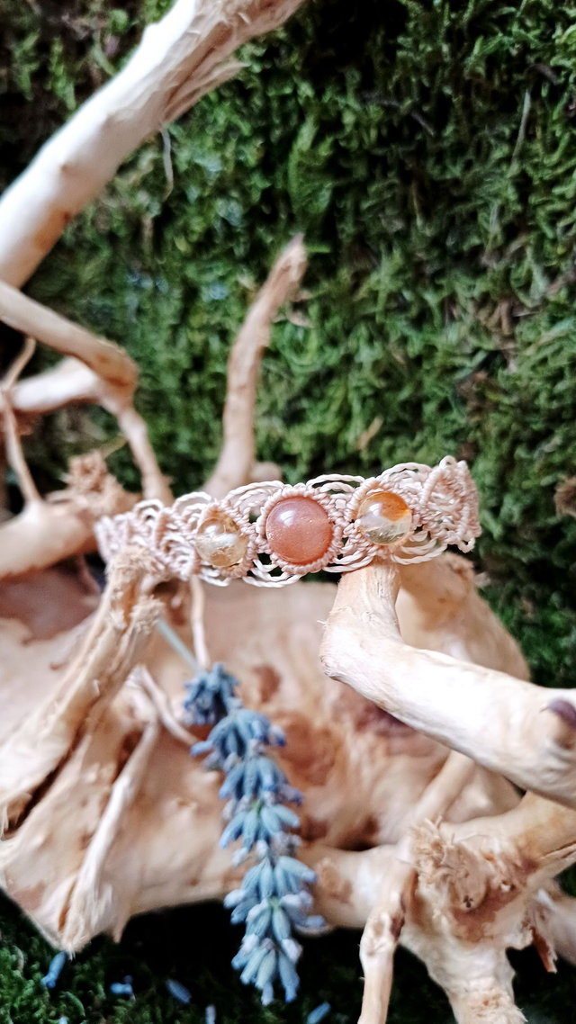 Matériaux : Fil linhasita, Citrine, Pierre de soleil