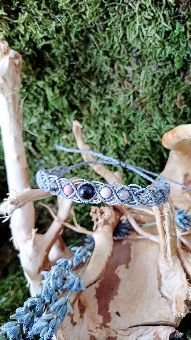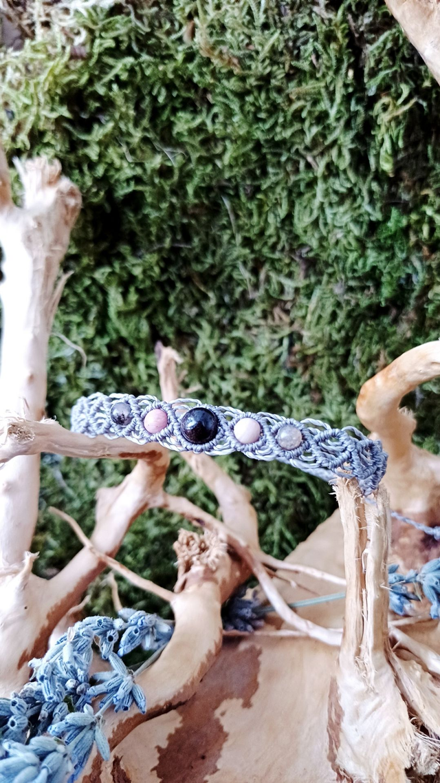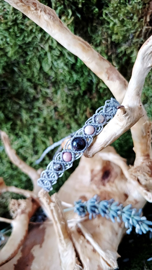 Matériaux : Fil linhasita, Grenat, Rhodonite, Lépidolite claire